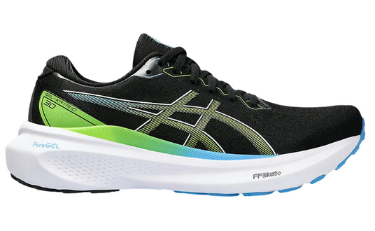 From 5Ks to full marathons, the GEL-KAYANO™ 30 shoe is designed to provide advanced stability and cushioning properties with less weight. The new 4D GUIDANCE SYSTEM™ helps provide adaptive stability via the shoe's wider basenets, increase heel bevel/forefoot flare, and arch recovery pod. Placed on the inside of the midsole, this adaptive foam helps position your arch for a more balanced stride. We also updated the midsole with FF BLAST™ PLUS cushioning. With approx. 24% bio-based content, this material helps create cloud-like softness in every step. PureGEL™ technology is strategically positioned below the heel and is 65% softer than standard GEL™ technology. Now you can make your distance training feel surprisingly smooth.