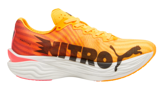 The Deviate NITRO™️ Elite 3 is a running shoe redesigned for lightweight, race day propulsion. A carbon fiber PWRPLATE ensures stability and maximum running efficiency, while NITROFOAM™ Elite offers supreme cushioning that won’t weigh you down. It’s a running go-to made with lightweight mono-mesh and durable PUMAGRIP rubber for multi-surface traction and an effortless run.